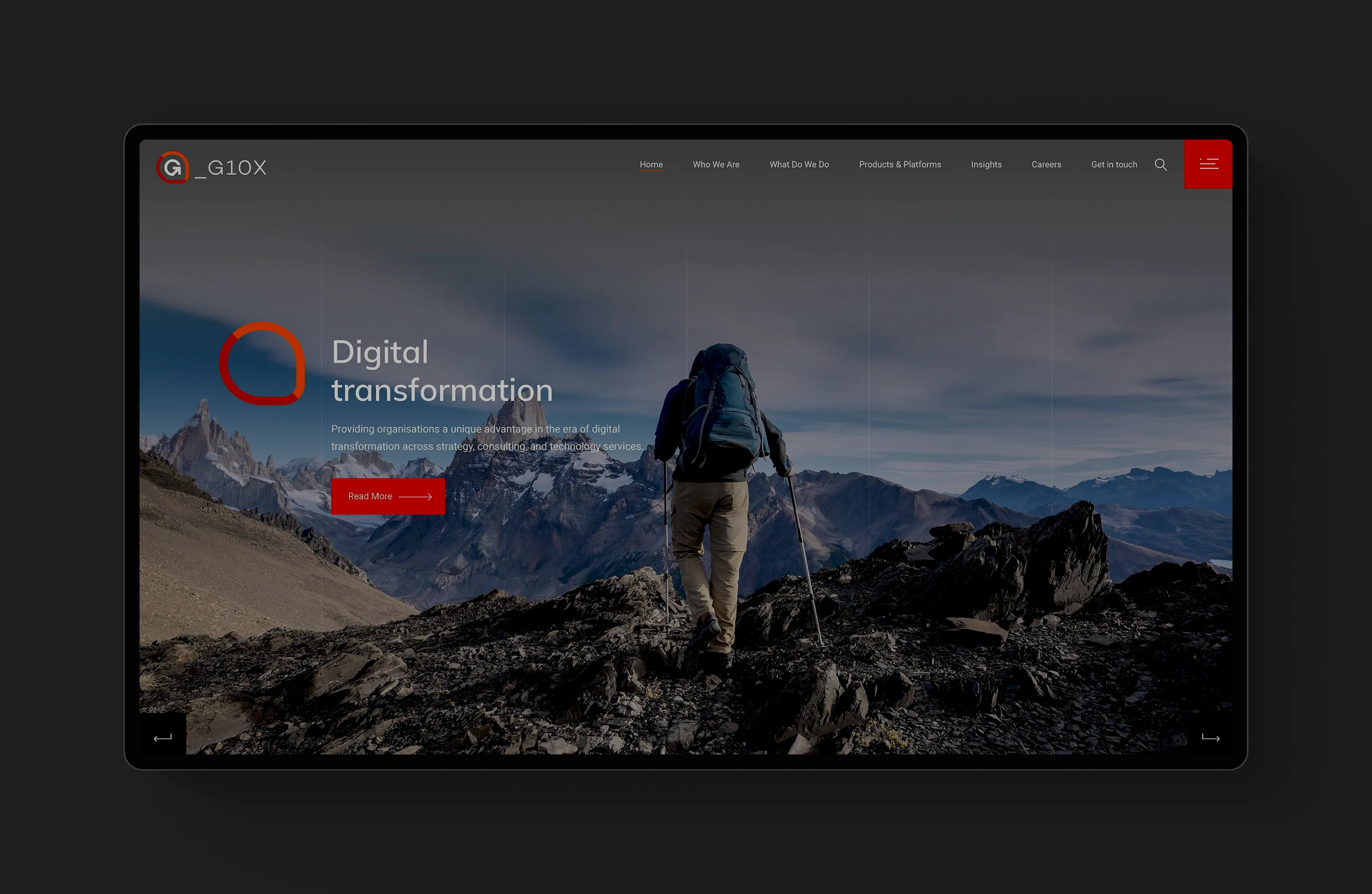 This concept redesign explores a modern digital presence for G10X, a technology and digital transformation company. The goal was to craft a bold, structured, and future-ready website that reflects innovation and enterprise capability.